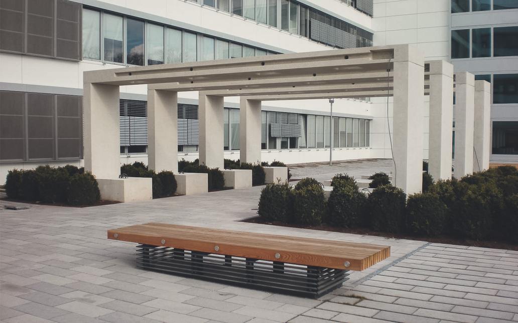 The stone piazza at the foot of the multi-storey building becomes the public centre of the quarter. The line of road trees is interrupted at the piazza area creating a clear gesture of opening towards the city. The area invites to linger and may be either used for public events or as outdoor area for the adjoining restaurants as well. The representative character of the three ourtyards is supported by classic landscape-design elements. As a concept the natural elements of water, wind and sun are picked out as a central theme.