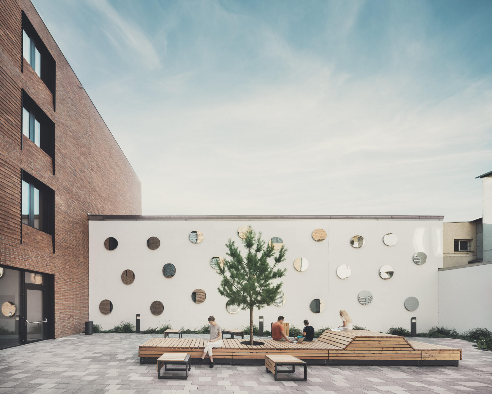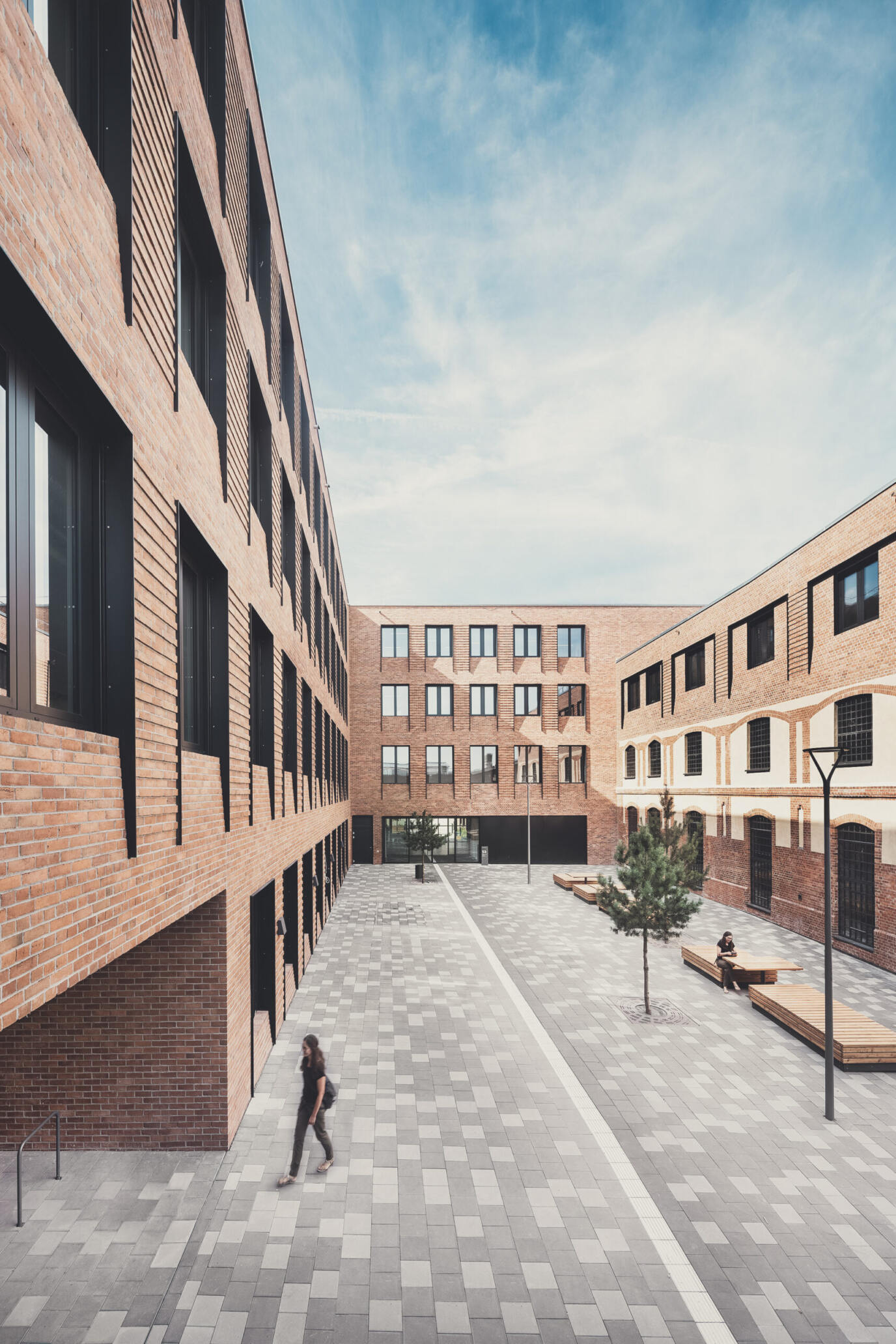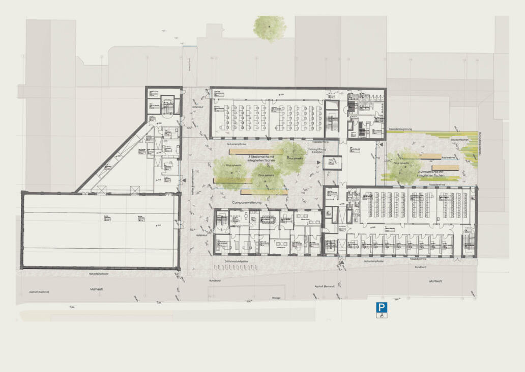 Im Zuge der Campuserweiterung der Hochschule Fulda entstehen an den Sanierungs- und Neubauten an der Moltkestraße (ehemaliges Areal der Mühle Heyl) neue attraktive Freiräume, die dem Fachbereich Pflege und Gesundheit zugeordnet werden. Zwei neue Innenhöfe vermitteln zwischen der bestehenden Bausubstanz und dem Neubau: einen ‚privater‘ Bereich zur internen Institutsnutzung und einen Bereich mit öffentlichem Charakter. Die Schnittstelle von Alt- und Neubau und der Innenhöfe ist der repräsentative Eingang und das großzügige Foyer.