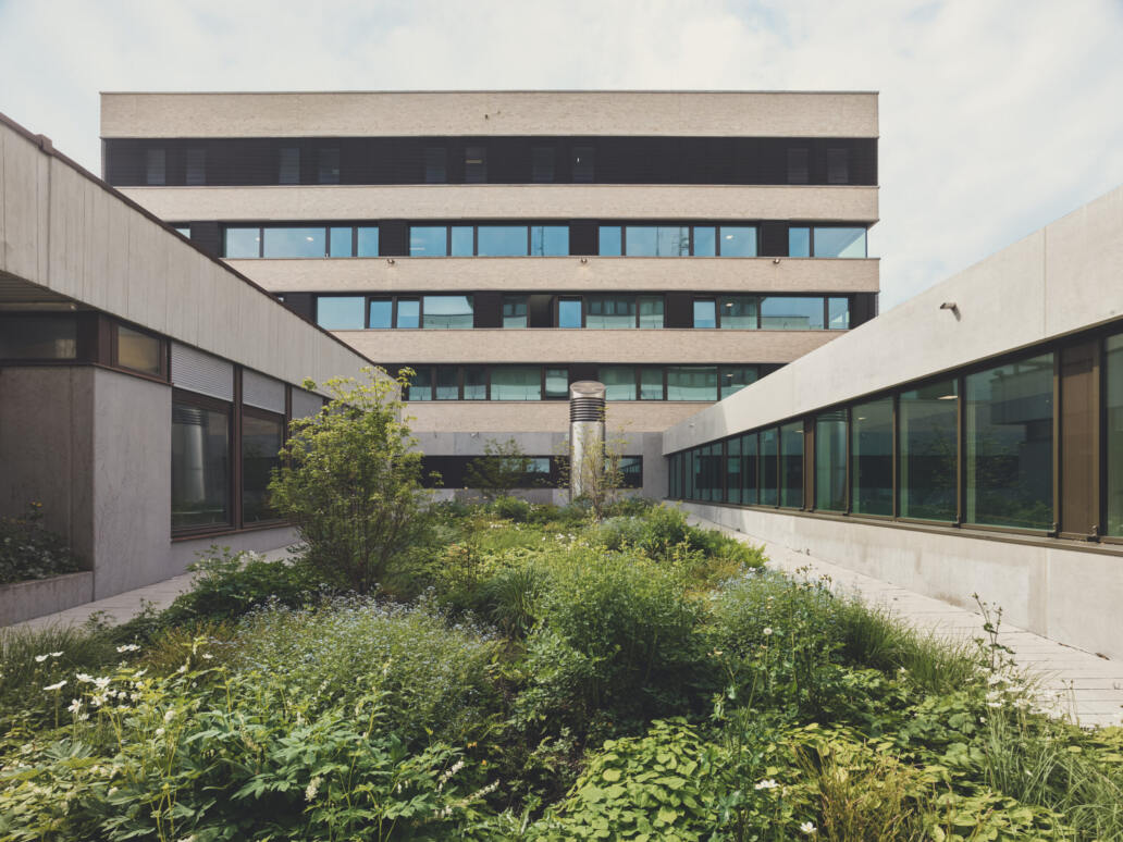 Aufgrund der baulichen Verbindung zwischen dem Altbau und der Erweiterung ist der Spielraum für die höhenmäßige Einordnung des Neubaus vergleichsweise gering, was zur Folge hatte, dass der geplante Anschluss am Gebäude derzeit ca. 1,30 m tiefer als das vorhandene Gelände südlich des Erweiterungsbaus liegt. Die Erschließungsstraße musste daher über eine Strecke von ca. 25 m abgesenkt werden, um ein Gefälle von 6 % in Richtung Finanzamt zu erreichen, wobei der südliche Anschlusspunkt noch höher als das direkt an der Südfassade anstehende Gelände liegt.