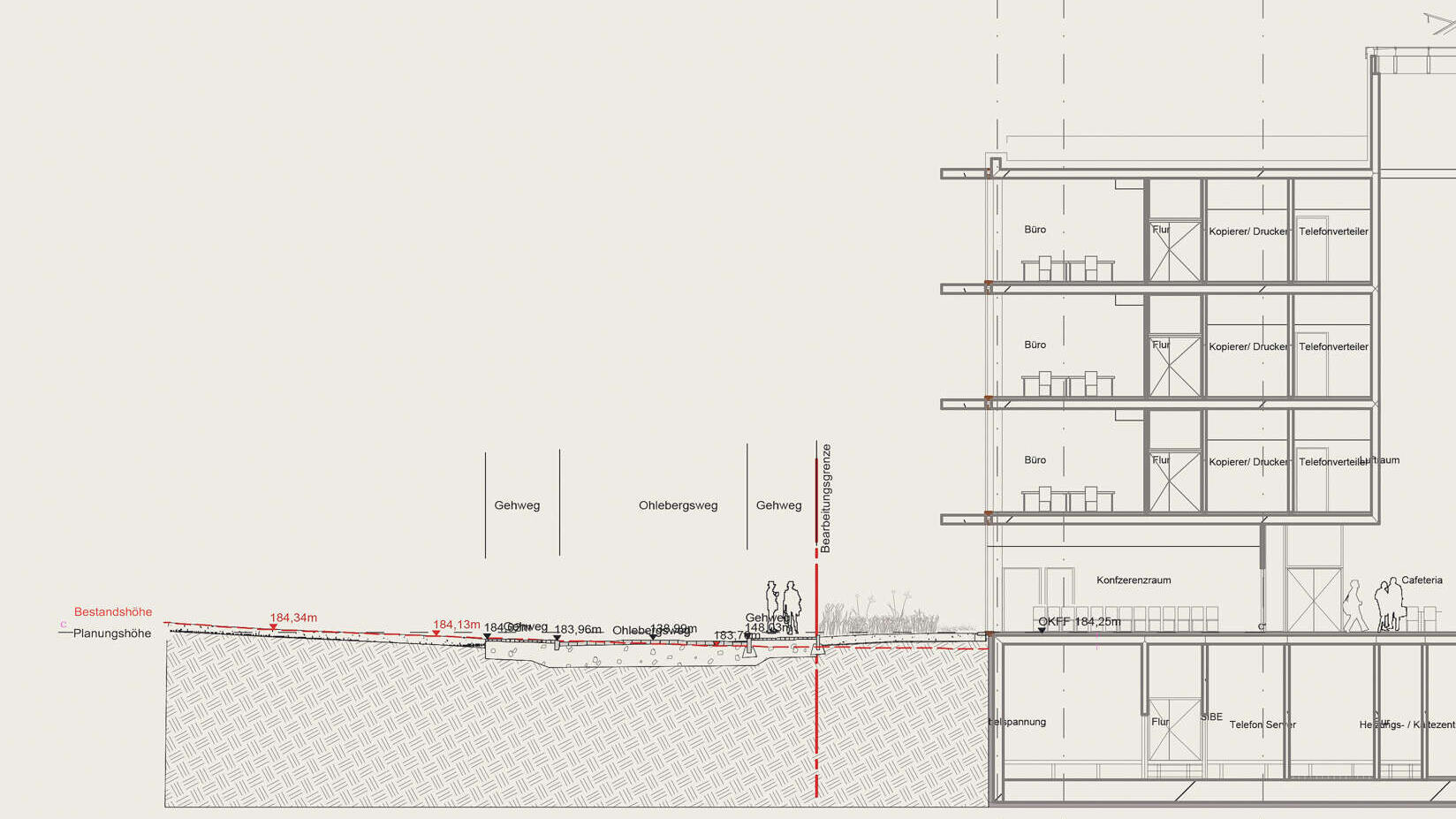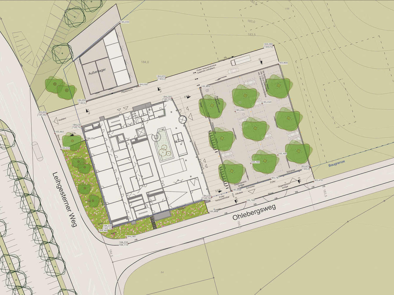 Der Entwurf leitet sich aus dem städtebaulichen Konzept ab. Dafür wird in Hinblick auf die zukünftige Entwicklung des Gebietes bereits heute östlich des