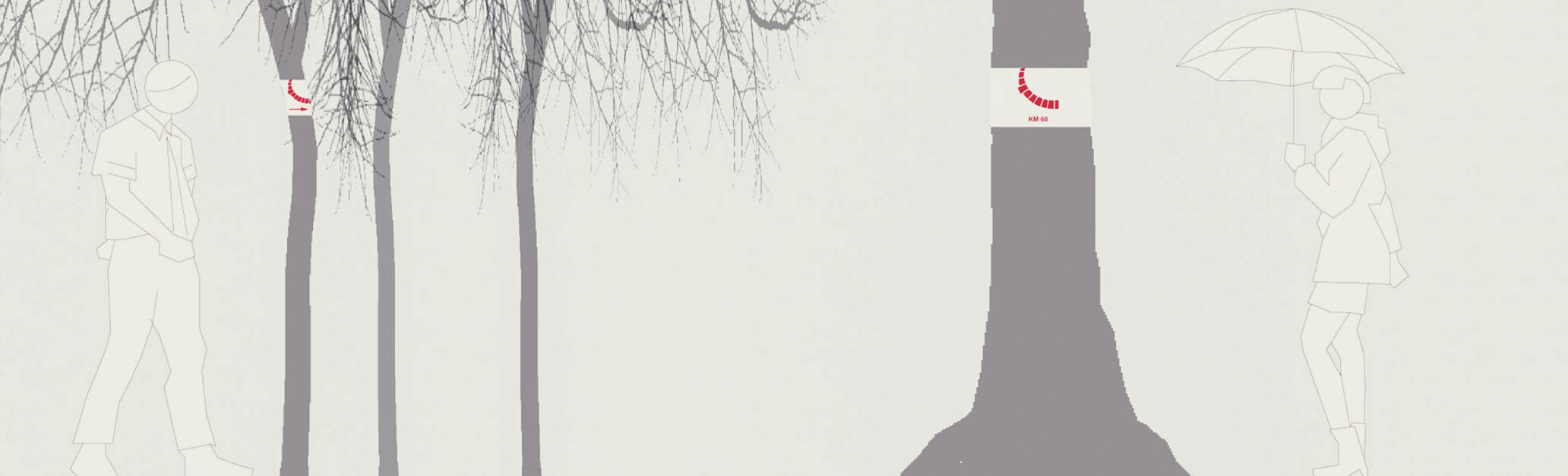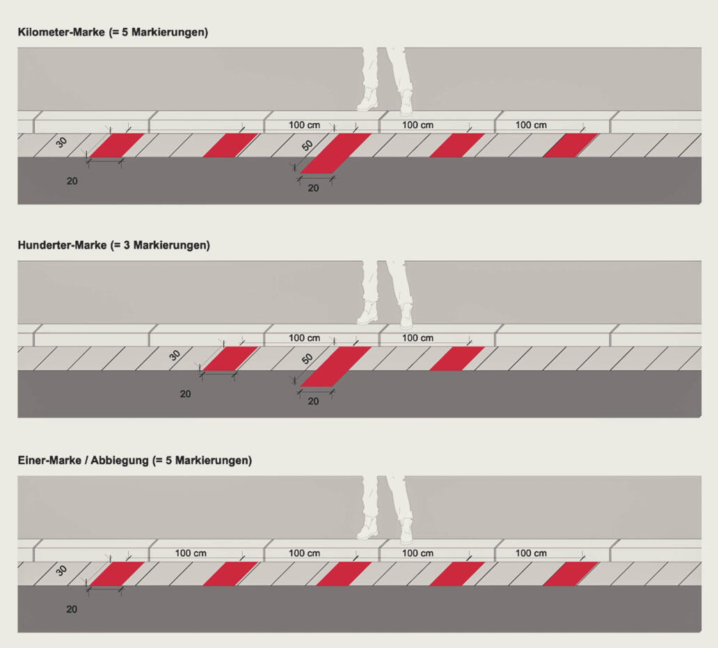 Die Grundlage der Gestaltung der Rundroute bildet die Markierung eines jeden vollen Kilometers auf dem 190 km langen Rundweg des Regionalparks RheinMain. Jedes Markierungselement trägt das Logo der Regionalpark Rundroute in rot. Als Orientierungshilfe für den Nutzer erfolgt die Aufbringung der Markierungselemente immer am Wegesrand, sowohl innerorts als auch außerhalb. Richtungsänderungen werden mit einer dem Wegeverlauf folgenden Markierung gekennzeichnet.